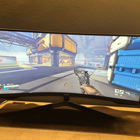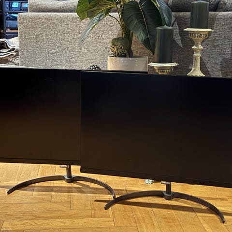 Philips 349X7F skjerm med buet 34-tommers ultra-wide. Modellen har tilkoblinger for blant annet HDMI og DisplayPort, som vist på baksiden.