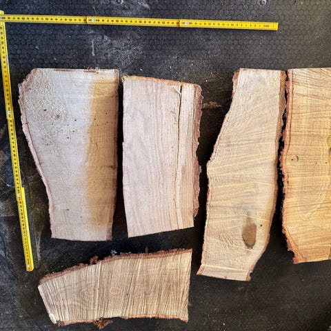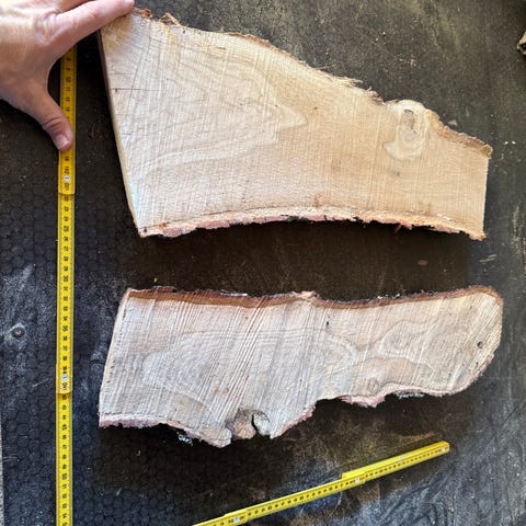 Kapp av eik og osp (not og fjær og spor under (tidligere gulvbord). Nydelig tre til hobbyprosjekter. Ubehandlet.
