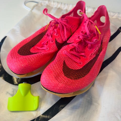 Heilt ny, kun sett på piggar!! Superrask sko, kan fint brukast opp til 5000m, men eg er 50, så mine leggar skal sleppa desse skoa😂