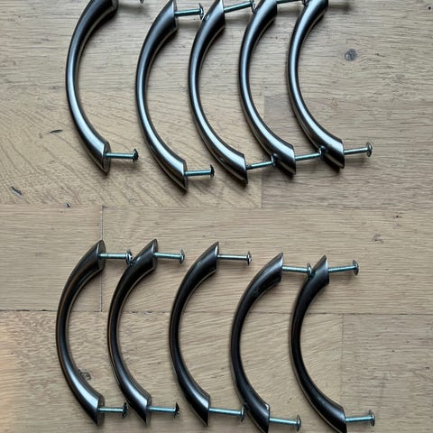 ENERYDA håndtak til skapdører og skuffer selges til 40,- per stykk.