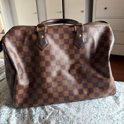 Louis vuitton speedy 30 i monogram mønstre til salg. Vesken er pent brukt men noe betydelig bruksmerker i glidelåsen lærbit, Canvassen er fin, ingen hull eller skader, ren på innsiden. Ektehetsbevis kan få ved forespørsel.