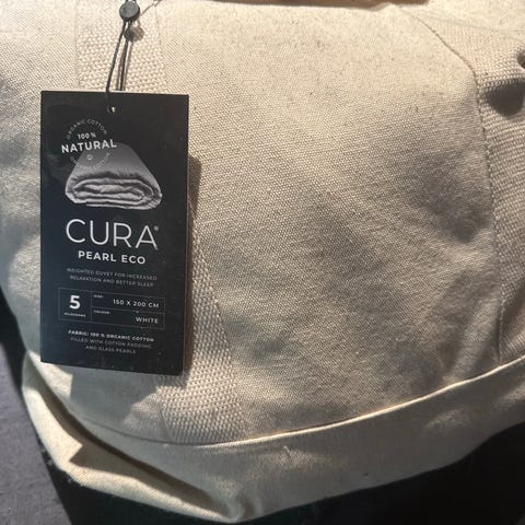 Cura of Sweden Pearl Classic vektdyne i størrelse 135x200 cm. Dynen veier 7 kg og er hvit. Ytterstoff i 100 % bomull med undersiden i slitesterkt polyesterstoff. Fyllet består av finmalte glassperler kombinert med polyesterfyll, fordelt i ruter for jevn vektfordeling. Dynen kan brukes som helårsdyne eller som ekstra tyngde over annen dyne, avhengig av behov og preferanse. Nyvasket.