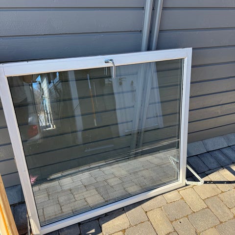 Gammelt vindu gis bort. Det staget/pinnen som låser vinduet i lukket posisjon på venstre side, mangler. Derfor lekker det litt luft inn når vinduet er lukket.