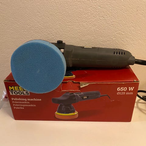 Dual Action Electric Polisher poleringsmaskin for elektrisk polering av overflater. Maskinen drives på 230V, 50Hz og har en effekt på 900W. Hastighetsområdet er 2000–6400 o/min, egnet for ulike typer poleringsarbeid. Leveres med bærebagg og tilbehør som vist på bildene. Passer til polering av blant annet bil og andre lakkerte eller glatte flater der det er behov for kontrollert sliping og polering.Helt ny.