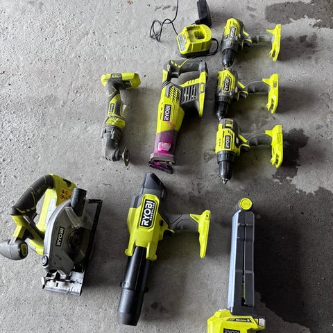 Ryobi verktøy sett, inkl mye HP utstyr og 6 batteri