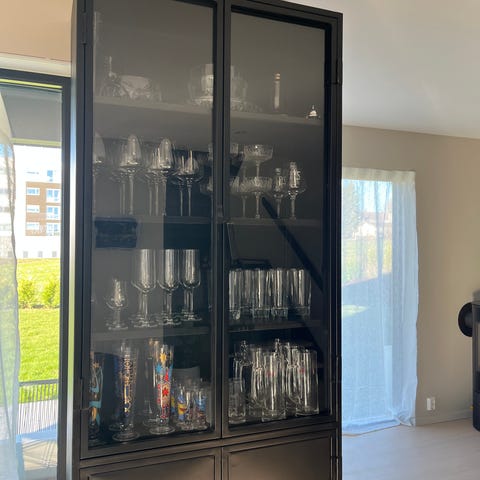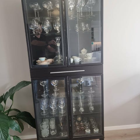 3 glass hyller. Totalt fire hyller. 2 hyller i rommet under