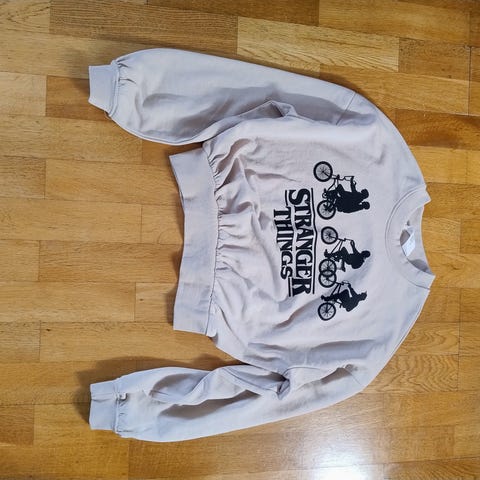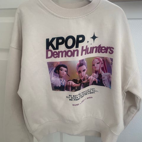 Zara genser for barn i størrelse 140. Genseren er i lys/hvit farge med «KPOP Demon Hunters»-trykk foran og mindre logo-trykk bak. Rund hals og lange ermer. Myk, børstet innside for økt komfort. Passer til hverdagsbruk.