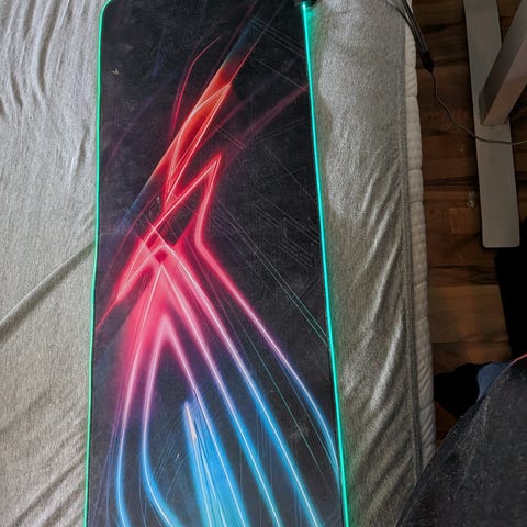 Selger en veldig pent brukt Corsair MM700 RGB gaming-musematte. Dette er "Extended" versjonen som dekker hele skrivebordet ditt med god plass til både tastatur og mus!