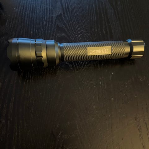 Dynamolykt LED med solcelle, svart, 15 lumen. Brukt på et par turer.
