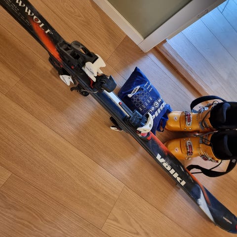 Salomon Spaceframe alpinski 165 cm blå med bindinger og Tecnica skistøvler
