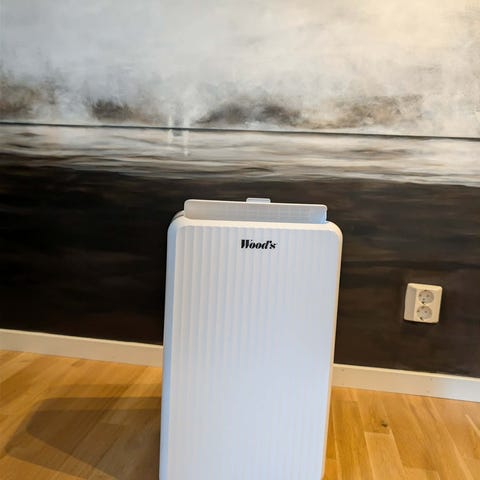 Wood’s luftavfukter i hvit utførelse. Enheten er beregnet for innendørs bruk og samler opp fuktighet fra luften i en beholder. Baksiden har luftinntak med rist og tilkobling for strøm. Passer til bruk i rom der man ønsker å redusere luftfuktighet, for eksempel kjeller, vaskerom eller andre oppholdsrom. Nærmere tekniske spesifikasjoner som kapasitet og modellbetegnelse står på typeskiltet på baksiden av apparatet.