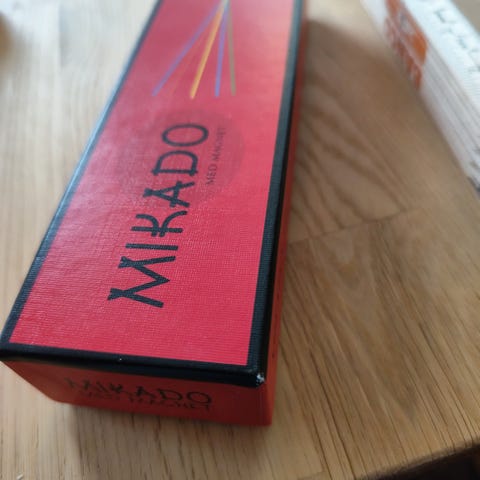 Mikado med magnet selskapsspill. Spillet består av mikadopinner med magnetfunksjon som gjør det enklere å plukke opp pinnene uten at de andre beveger seg. Egner seg som familiespill og til enkel underholdning for flere spillere. Leveres i eske med trykt bruksinformasjon på siden.