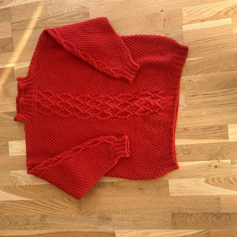 Jeg har aldri brukt genseren og blir bare liggende. Er veldig hyggelig hvis noen andre kan få bruk for den, enten til sport eller andre begivenheter hvor man ønsker å pynte seg med det norske flagg 😁 Strikket genser for dame i størrelseL/ XL. Strikket i alpakkaull, som gir et mykt og varmt plagg egnet til bruk i kjølige temperaturer. Passer til hverdagsbruk eller som et ekstra lag over andre plagg.