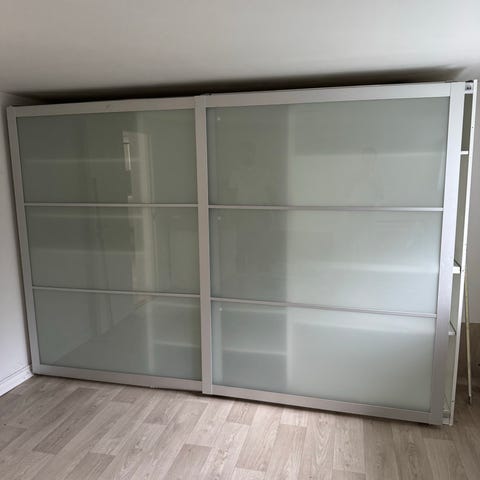 Pent brukt Ikea PAX garderobeskap med diverse innredning selges, må demonteres for og fraktes. Mulig det ev blir demontert før..