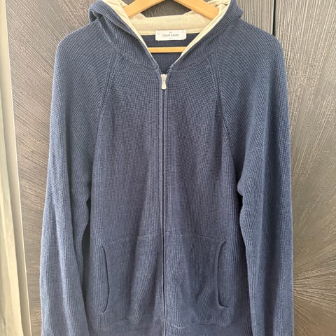 Gran Sasso Seasonal dunjakke for herre i størrelse 52. Jakken er beige og vattert med dun for god isolasjon. Den har ribbestrikket krage, mansjetter og nederkant i kontrastmateriale, samt knappelukking foran. Produsert i Italia. Egnet som ytterjakke i kjøligere vær. Tar trades