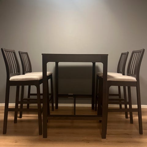 Har også 6 LILLÅNÄS stoler i grå som kan kjøpes for 50 kr per stykk.