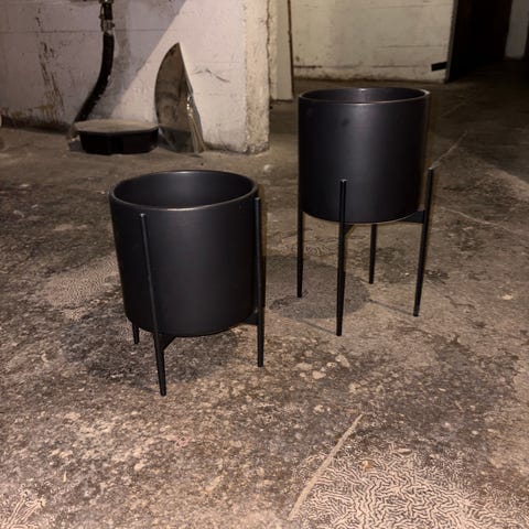 To stk. vegghengte blomsterpotter fra Kremmerhuset. Farge sort.