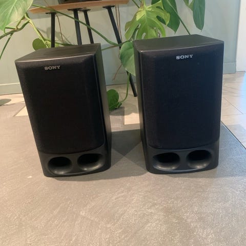 Her får du dyp, kontrollert bass og krystallklar lyd som fyller selv store stuer uten problemer. Brukt som stereopar i et røyk- og dyrefritt hjem. De ser strøkne ut og fungerer 100 %.