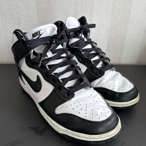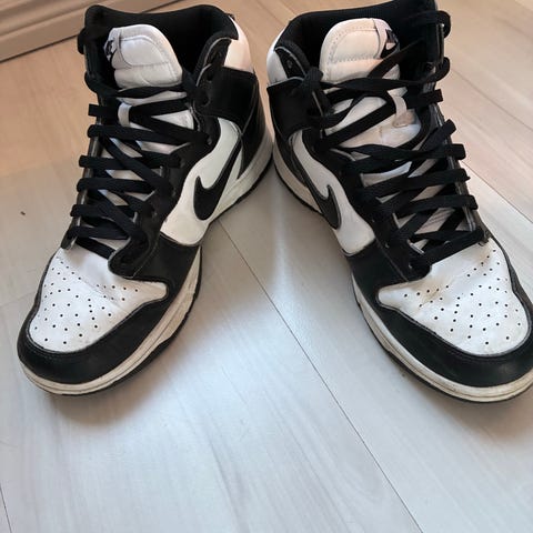 Selger et par Nike Dunk High i klassisk sort/hvit (“Panda”), str. 38.