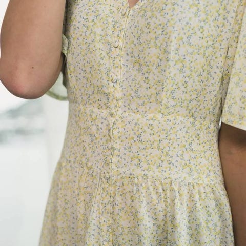 Kjolen har ganske dyp utringning. Normal i størrelsen.