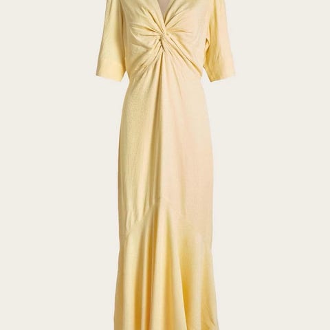 Pen og anvendelig omslagskjole fra Camilla Pihl festkjole. Kjolen er tung og faller fint uten å krølle. Laget i blank polyester med viskose-underskjørt.