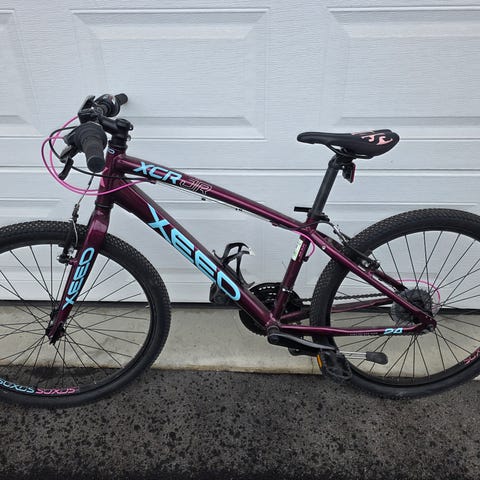 Xeed JR Twentyfo barnesykkel med 24" hjul. Sykkelen har ramme i lilla farge med lyse detaljer. Utstyrt med flat styre, standard sete og pedaler. Passer til barn som trenger en sykkel med 24-tommers hjul til hverdagsbruk og sykling på vei og lett grus. Sykkelen har gir og bremser tilpasset barn