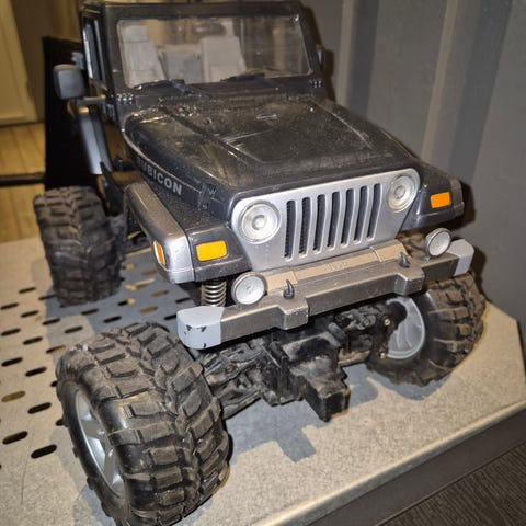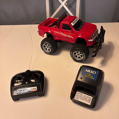 Nikko Jeep radiostyrt bil med karosseri utformet som en Jeep-terrengbil. Bilen er rød med store offroad-dekk og åpent karosseri med seter. Den leveres med Nikko RC-system fjernkontroll og Nikko Ni-Cd batteripakke på 9,6V (650 mAh), slik som vist på bildene. Egnet som radiostyrt lekebil for bruk på faste og litt røffe underlag. Spesifikke mål og skala er ikke oppgitt.