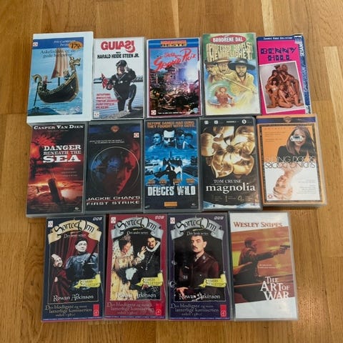 Selger 6 stykk gamle VHS filmer, samlet for alle sammen kr 180,-
