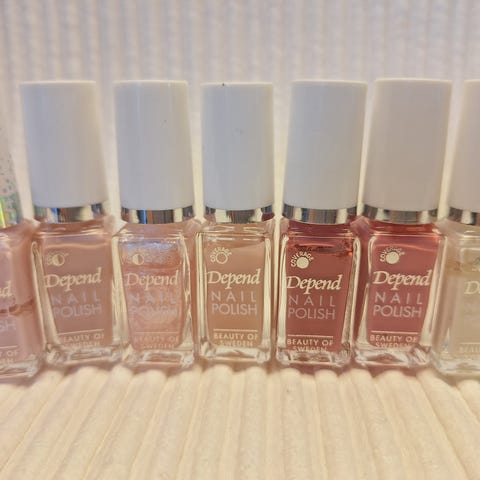 Dior Addict neglelakk sett i flere farger. Settet inneholder seks flasker neglelakk i ulike nyanser av rosa, hvit, rød, lilla og lavendel. Hver flaske har gullfarget kork med Dior-logo. Neglelakkene passer til bruk på naturlige negler og kan kombineres for ulike uttrykk og fargekombinasjoner.