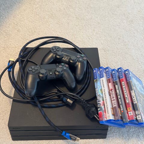 Sony Playstation 4 Pro spillkonsoll med spill og kontrollere
