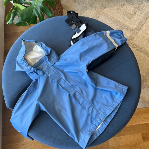 Unisex-modell som passer både jenter og gutter. Laget i polyester med vannavvisende overflate, egnet til bruk i vått vær og utelek.