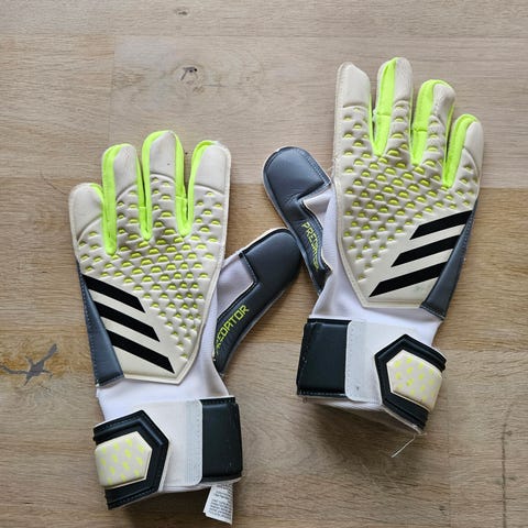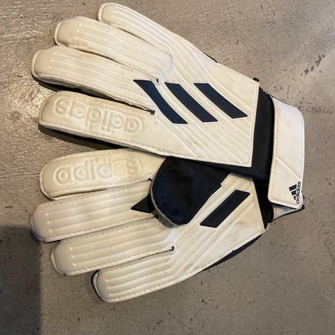 Adidas målkeeperhansker i svart og hvit farge. Hanskene har hvit gripeflate og svart overside med hvite Adidas-detaljer. Justerbar borrelås rundt håndleddet for tilpasning og støtte. Leveres i original eske slik vist på bildene. Egnet til bruk som keeperhansker i fotballtrening og kamp.