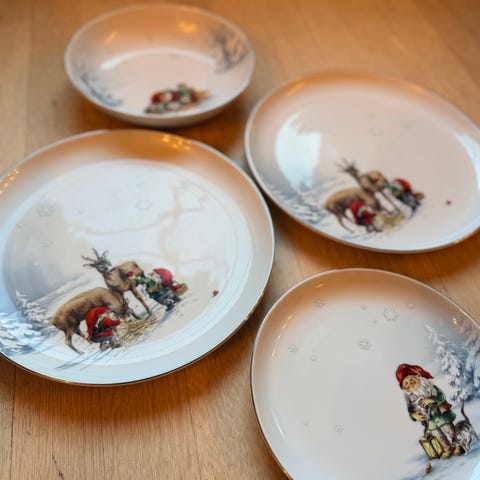 Selger 8 asjetter i serien nissenes jul. Et vakkert servise fra fyrkløveren, som har gått ut av kolleksjonen. Fremstår som nytt, ingen merker, riper eller hakk. Selges samlet for 1500,-
