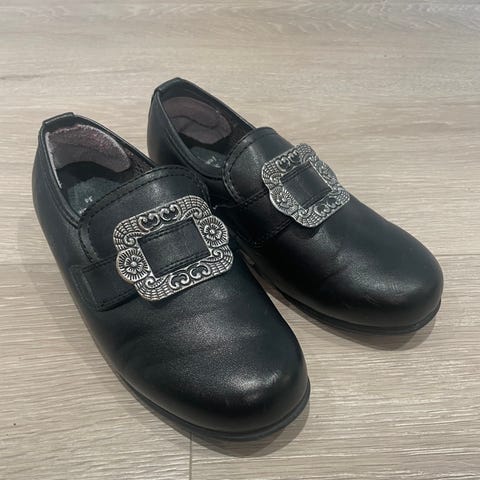 Pent brukte bunadsko. Har noen striper i skinnet på innsiden foran som lett kan dekkes med skokrem. Skoene har ikke dype riper eller skader. Kan sendes med Posten eller Helt hjem, eller hentes sentralt i Oslo eller på Algarheim.