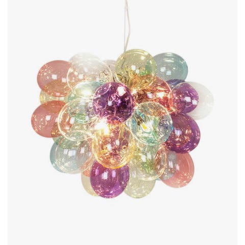 Lampen består av 37 munnblåste glasskuler som danner en svevende “sky” og gir et unikt uttrykk i rommet.
