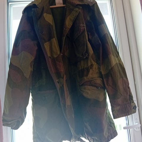 Jakken har klassisk militært snitt med flere lommer og solid konstruksjon, og egner seg godt til airsoft, jakt og friluft. Ser ut som britisk militær/surplus eller tilsvarende modell.