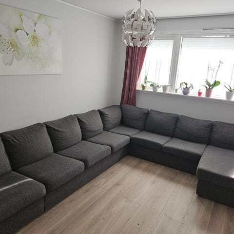 Én sittepute mangler glidelåstrekker, men det er ikke synlig eller merkbart ved bruk. Trekkene er vaskbare. Sitteputenes skum ble byttet for få år siden.