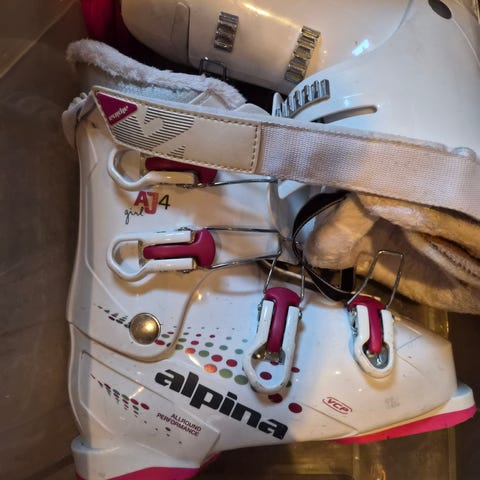 Atomic Mania alpinstøvler i størrelse 24.5 for dame. Støvlene er hvite med grå detaljer og røde spenner. Modellen har fire justerbare spenner og powerstrap øverst for bedre tilpasning rundt leggen. Myk og polstret innerstøvel gir komfort og støtte. Passer til vanlig alpinbruk i preparerte bakker.