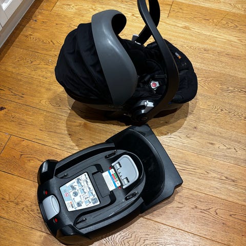 Bilsetet er et bakovervendt spedbarnssete i vektklasse 0–13 kg (gruppe 0+), egnet fra ca. 40–75 cm. Det har integrert bærehåndtak, justerbar internsele og sidebeskyttelse. Setet kan monteres med isofix-base (avbildet) eller med bilens trepunktsbelte, avhengig av bil og behov.