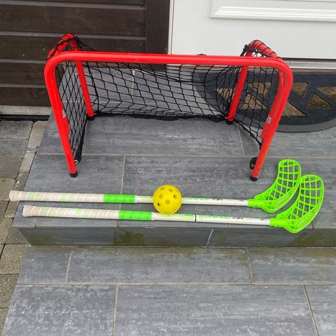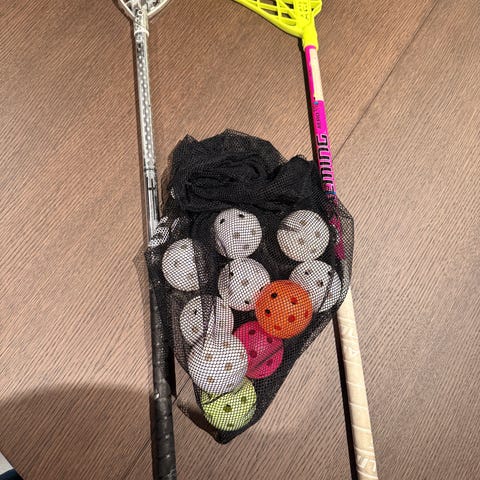 Inneholder flere svarte ishockeypucker samt flere innebandyballer i hovedsak hvite, med noen i andre farger. Egner seg til bruk på isbane, trening, lek eller innebandyspill. Antall, merker og eksakte størrelser er varierende i partiet.