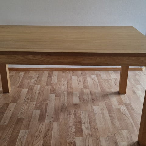 Hvit kjøkkenbord med eik understell. 80x120. Må hentes av kjøper på Steinkjer.