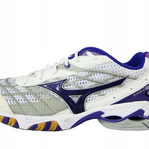 Mizuno Wave Lightning Z7 volleyballsko i størrelse 43. Skoen er hvit med mørkeblå detaljer og yttersåle, samt gul logo bak. Modellen er utviklet for volleyball og har en mønstret gummisåle som gir godt grep på innendørs underlag. Overdelen er i lett syntetisk materiale med ventilasjonssoner. Skoen har lav profil og demping i mellomsålen for komfort ved raske bevegelser og hopp.