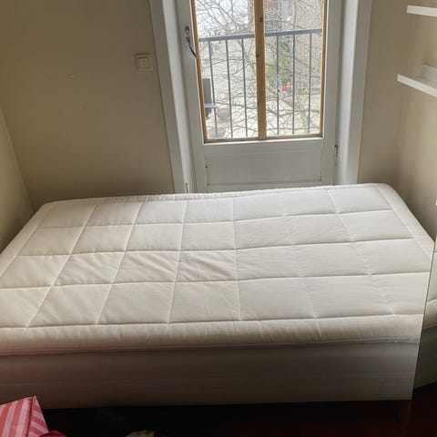 IKEA Sultan Storfors fjærunderstell i grått stoff. Fjærbunnen er ment å brukes sammen med en overemadrass. Passer som enkeltseng på soverom, gjesterom eller tenåringsrom. Ben følger med på 20 cm. Rammemadrassen er støvsuget, steamet og renset med maskin så den har ingen flekker.