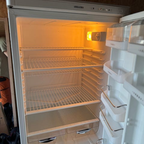 Kjøleskapet består av hyller i kjøledelen, grønnsaksskuff og dørhyller for oppbevaring av flasker og mindre varer. Egnet som ekstra kjøleskap på kjøkken, hybel eller i bod/garasje der det er behov for enkel kjølelagring av mat og drikke.