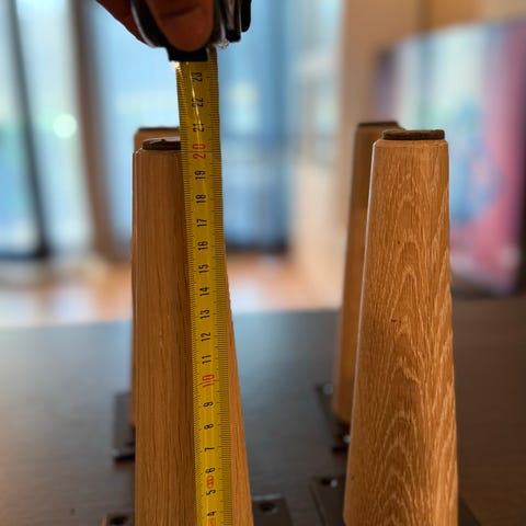 Hjellegjerde runde sofabein i lys eik. Høyde 9 cm. Disse kan også brukes på ikea sofaer og senger ( samme gjengtykkelse på skruene). 8 stk. Selges samlet, men kan evt deles opp. Pris er for alle 8