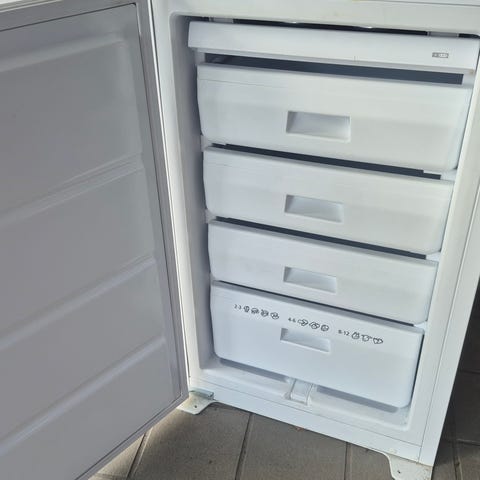 Fryser med 3 skuffer selges for 500,-. Den ene skuffen er litt ødelagt, se bilde, men den fungerer som den skal.