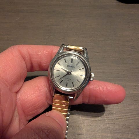 1 Seiko , 1 wyler ,1 De 3 herre trenger batteri , den som jeg tror er dame klokke går når den trekkes ( Olympic sport m. Bullseye skive , slitt glass ) . Lenka til den firkanta kan nok rep enkelt . Seiko klokka har org reim tilsalgs samlet for en hyggelig sum
