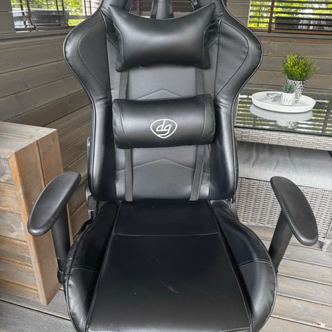 Piranha gamingstol i svart farge. Stolen har høy rygg med integrert hodestøtte og åpninger øverst i ryggen. Setet er polstret og trukket i et glatt materiale, trolig kunstskinn. Armlenene er justerbare i høyden, og stolen har hjulkryss med fem hjul for enkel forflytning. Egnet som stol til gaming eller kontorarbeid ved skrivebord.