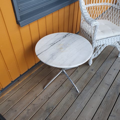 Rundt sofabord marmorlook treunderstell hvit