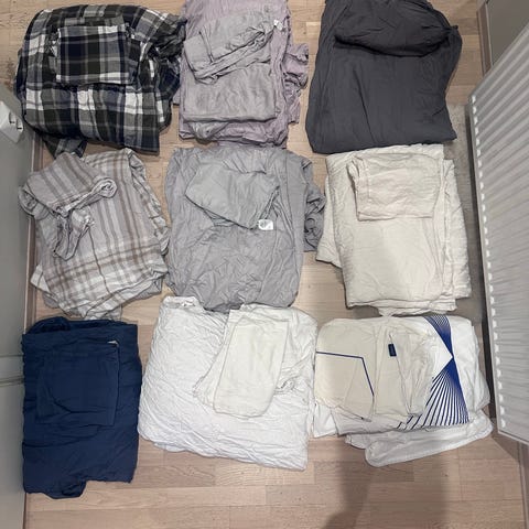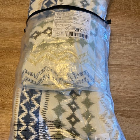Sengetøysett gul- og hvitstripet bomull. Sengetøyet består av dynetrekk og putetrekk med smale gule og hvite striper. Passer til dobbeldyne